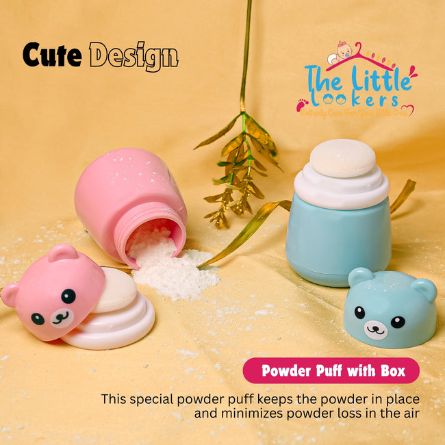THE LITTLE LOOKERS Portable Baby Skin Care Baby Powder Puff with Box Holder Container for New Born and Kids for Baby Face and Body